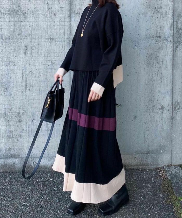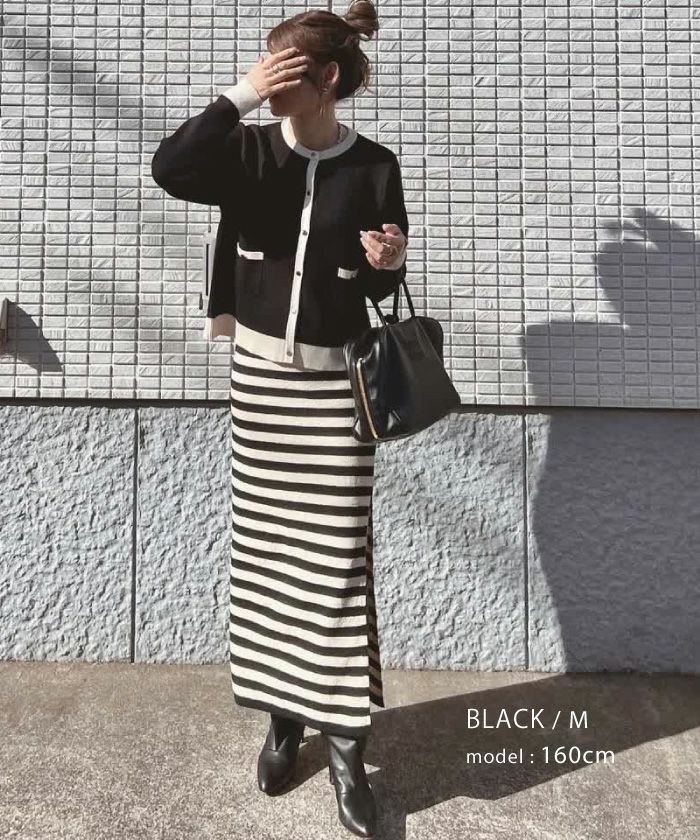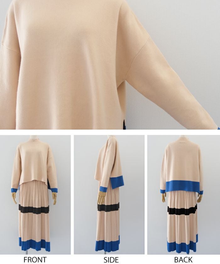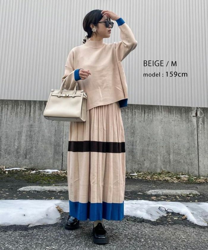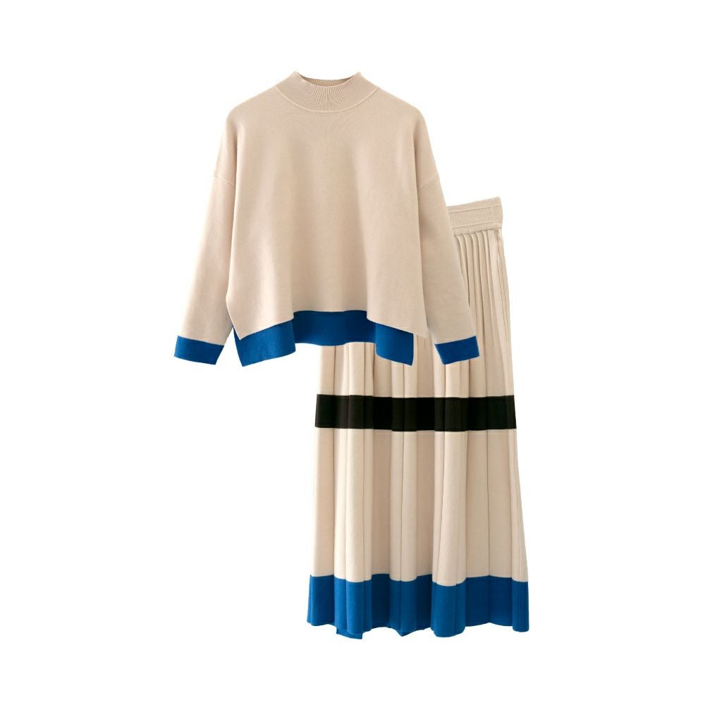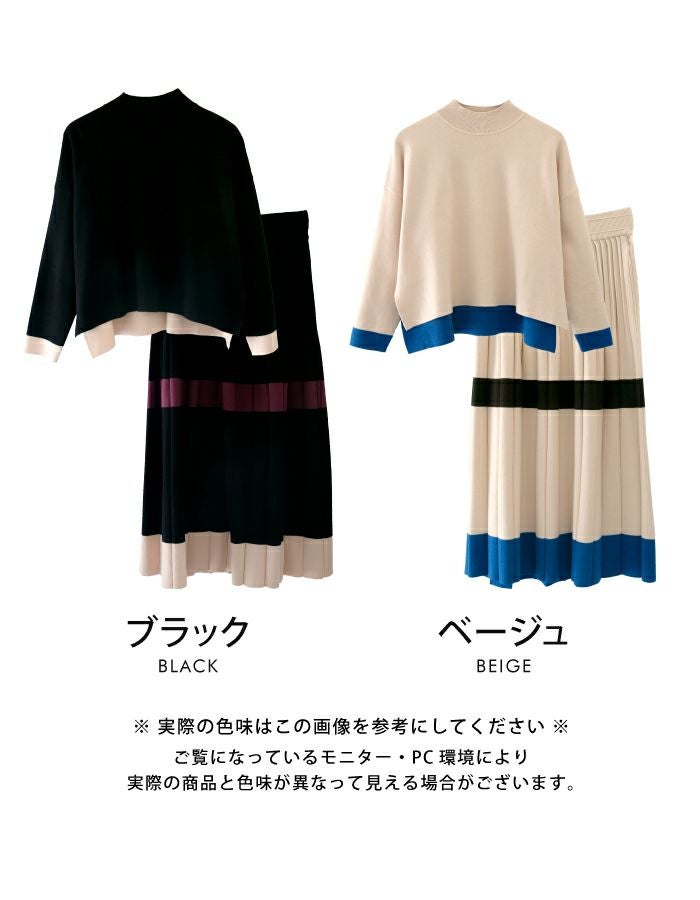 送料無料 配色ニットセットアップ レディース 春 秋 冬 長袖 M L | アクアガレージ aquagarage