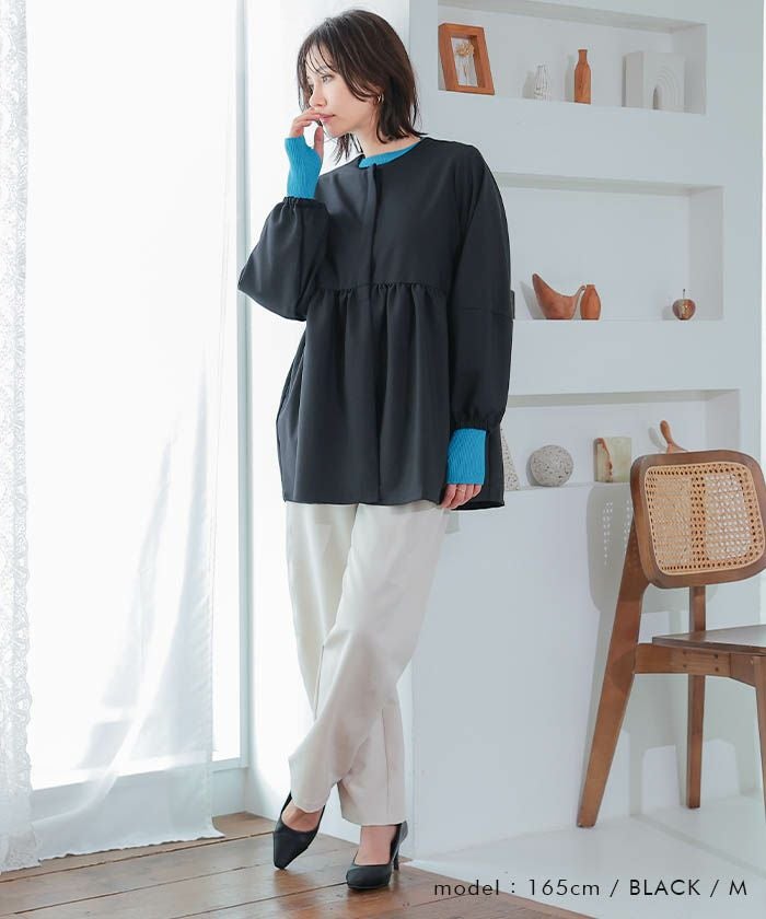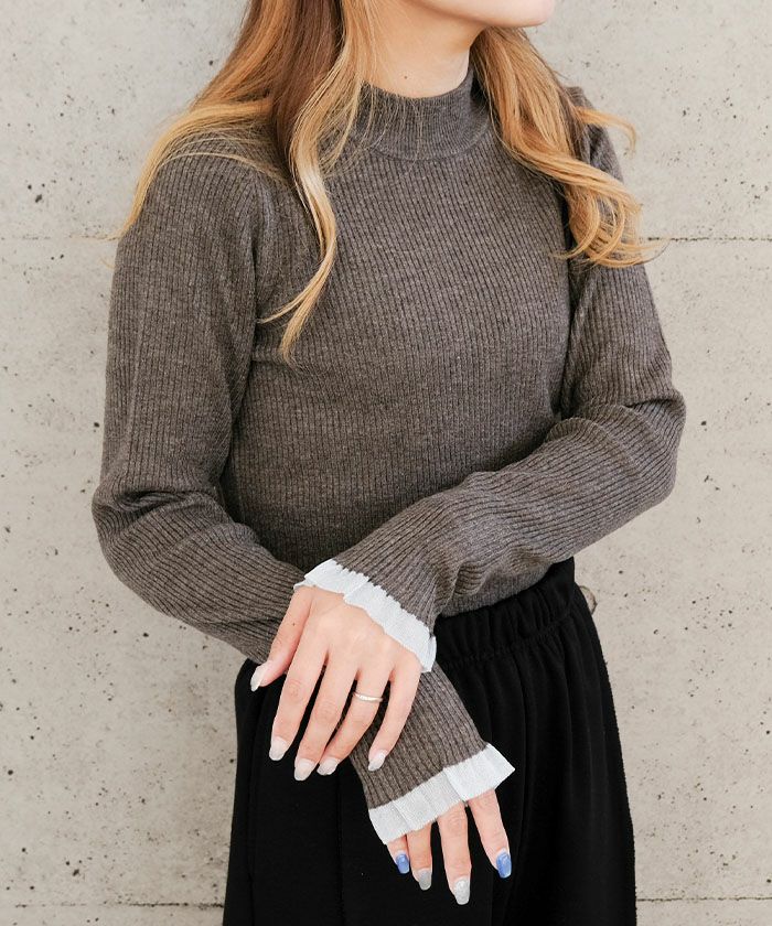 送料無料 袖・襟シフォンプリーツニットトップス レディース 春 秋 冬 M L LL 長袖 ≪ゆうメール便配送30・代引不可≫ | アクアガレージ aquagarage