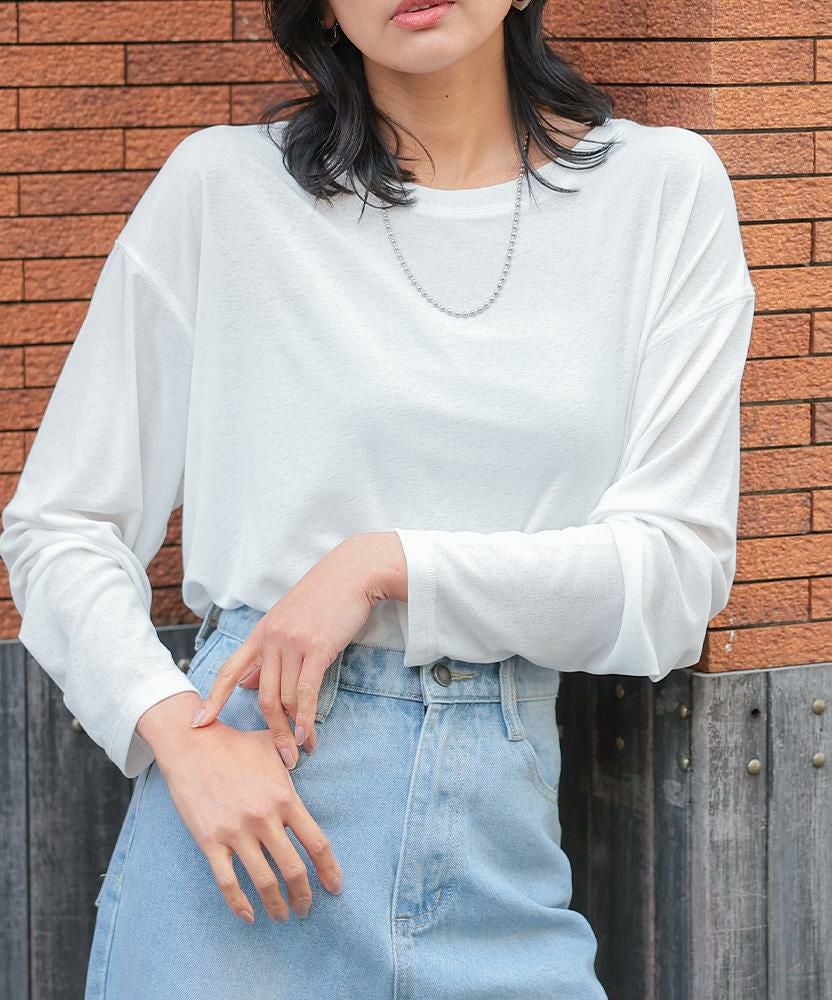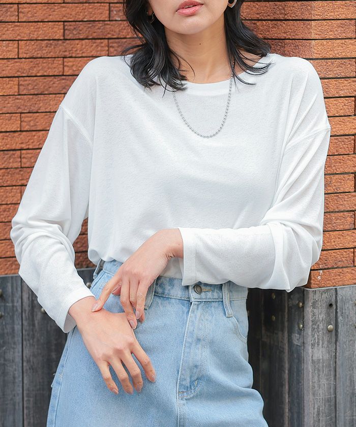 送料無料 袖先シアーハイゲージニットトップス 春 秋 冬 M レディース ≪ゆうメール便配送30・代引不可≫ | | アクアガレージ aquagarage