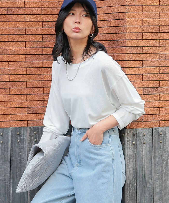 送料無料 袖口シアーニットトップス 春 秋 冬 M レディース ≪ゆうメール便配送10・代引不可≫ | | アクアガレージ aquagarage