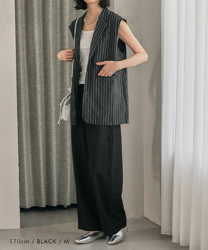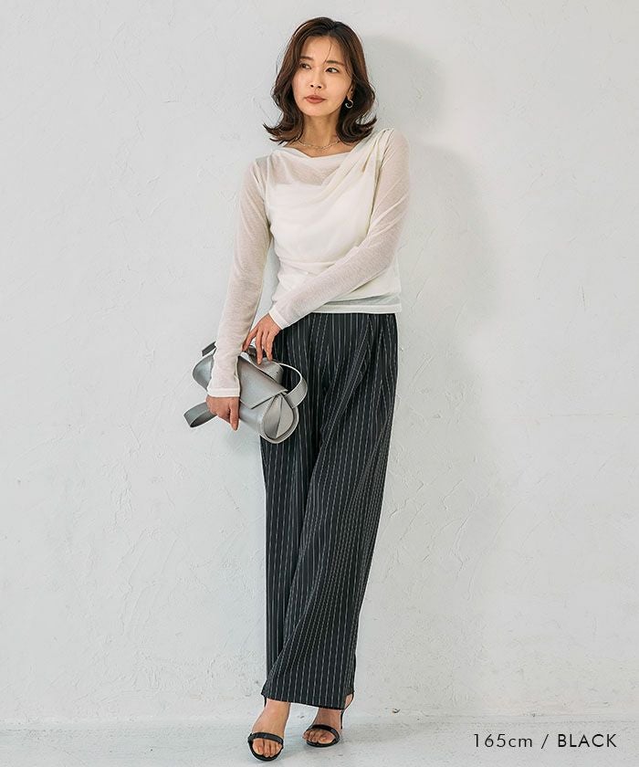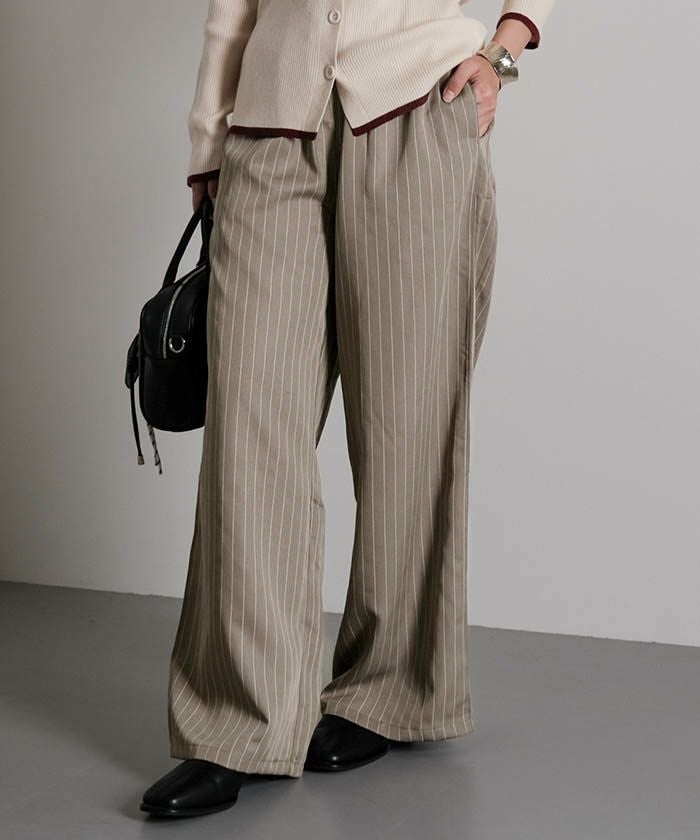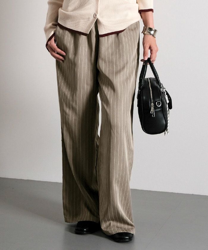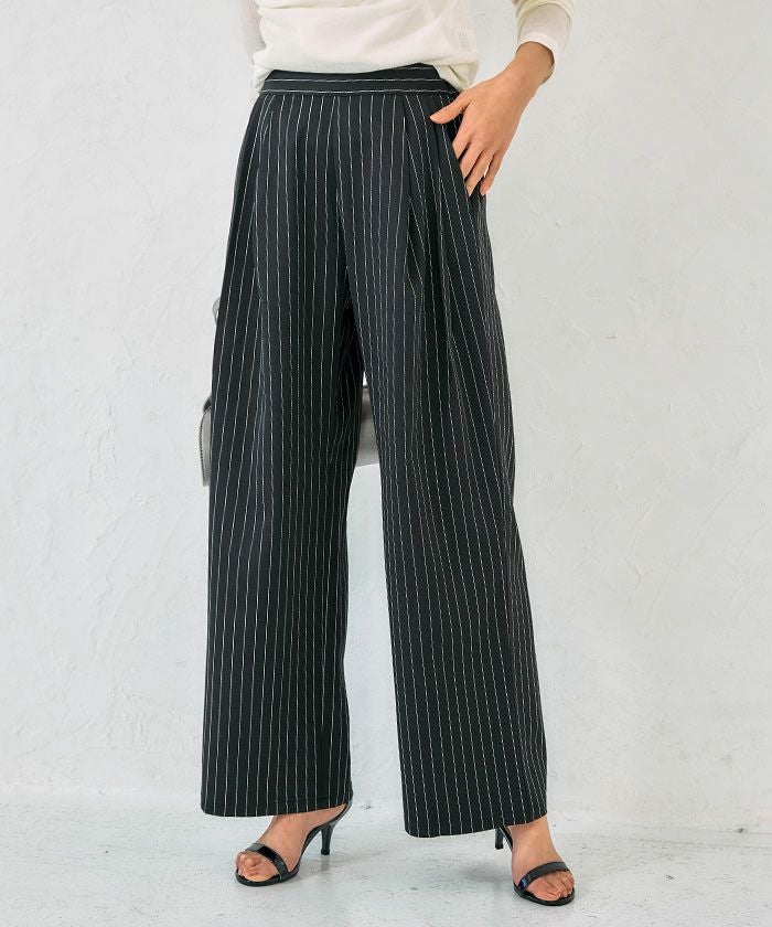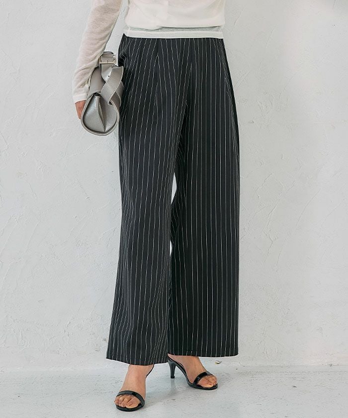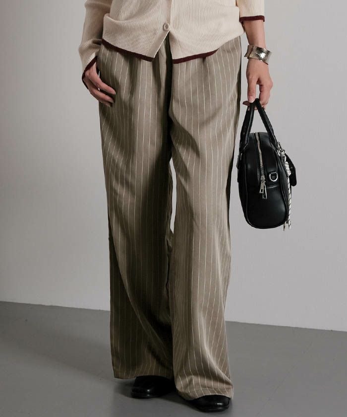 送料無料 【セットアップ可】ツータックストライプワイドパンツ 春 夏 秋 冬 M |≪ゆうメール便配送30・代引不可≫アクアガレージ aquagarage 予約(2月下旬頃)