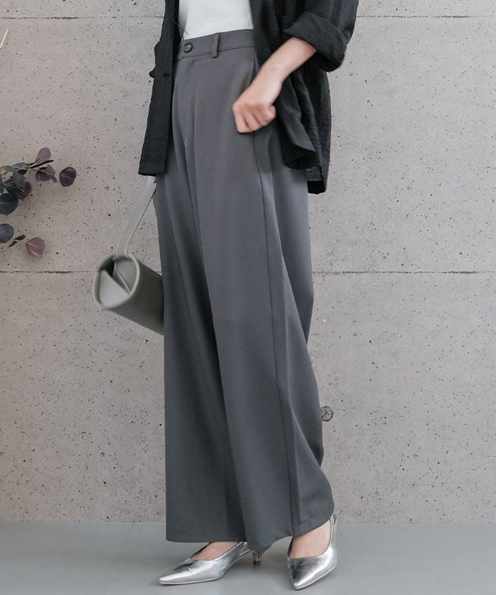 送料無料 フロントタック入りワイドパンツ レディース 春 夏 秋 S P M L LL ≪ゆうメール便配送30・代引不可≫ | アクアガレージ aquagarage