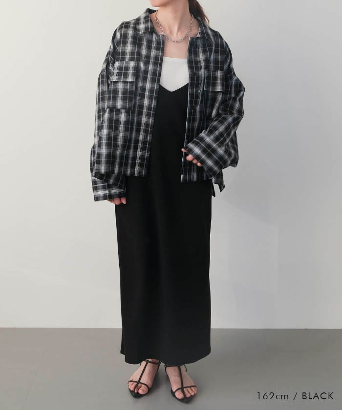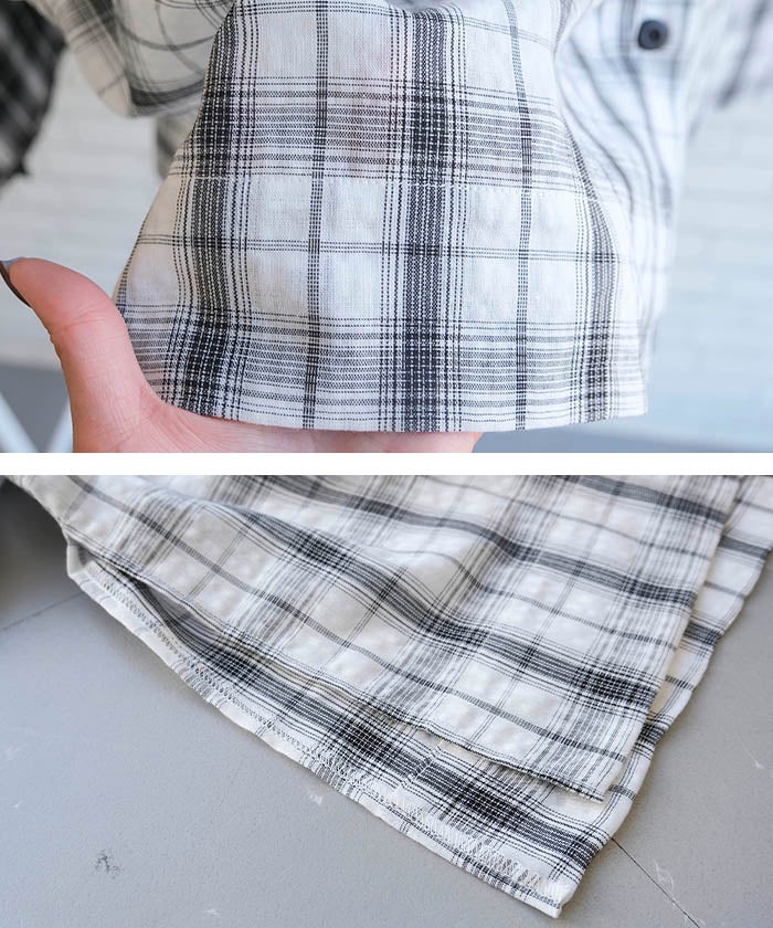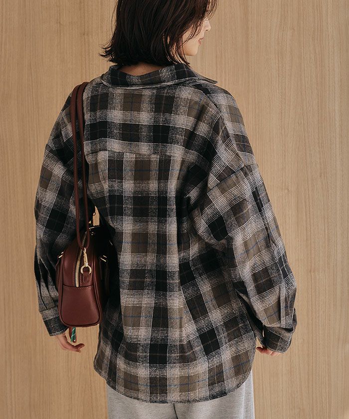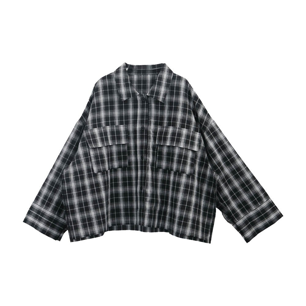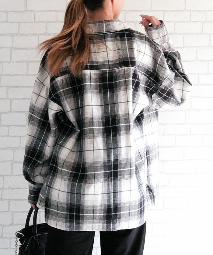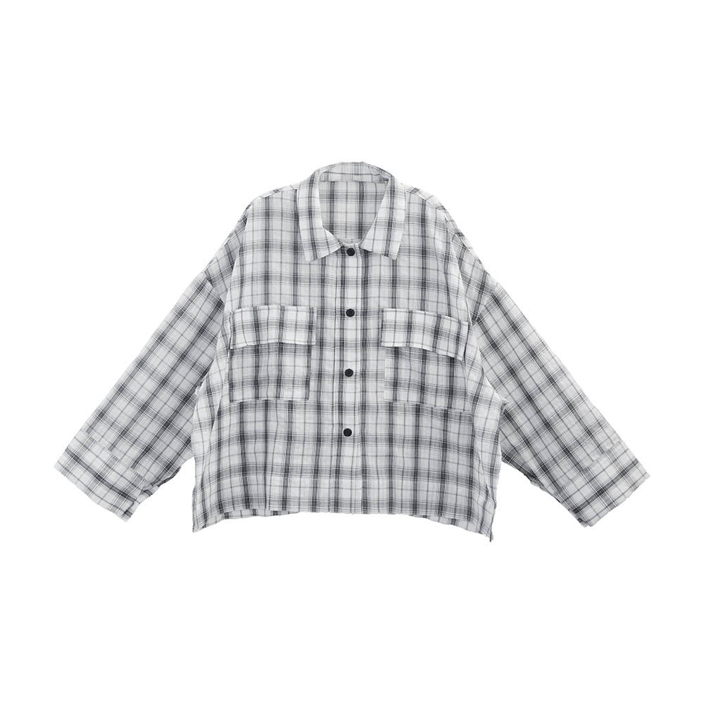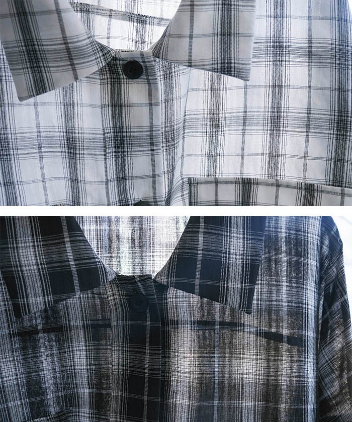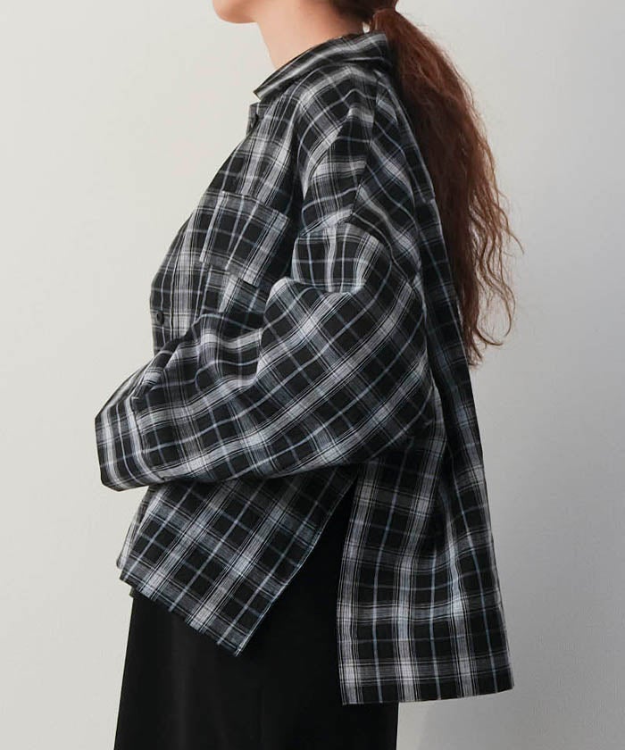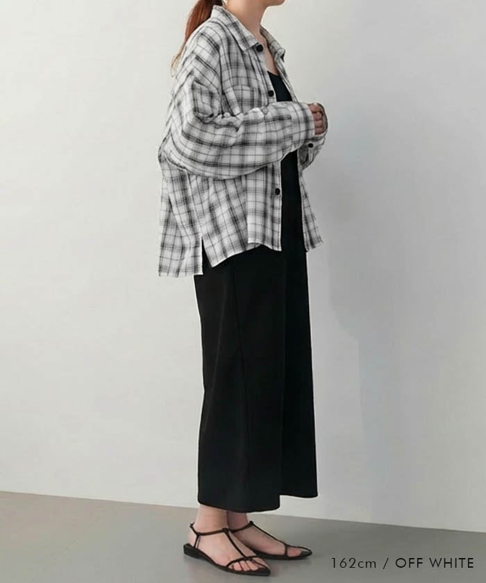 送料無料 シアーチェックオーバーサイズスキッパーブラウス 春 夏 秋 M レディース ≪ゆうメール便配送20・代引不可≫ | | アクアガレージ aquagarage