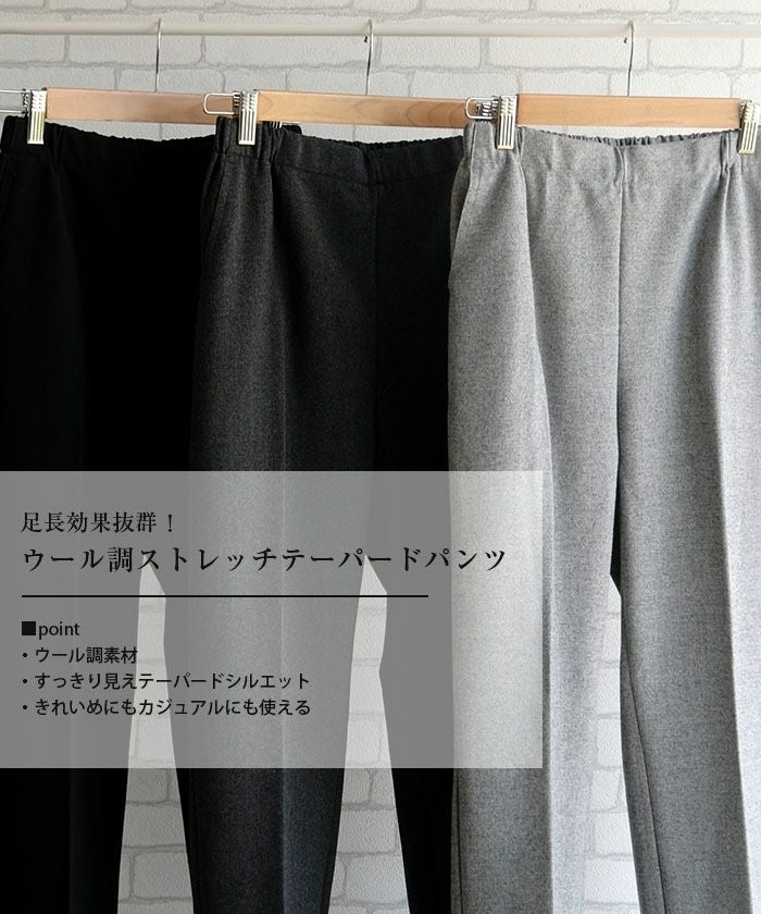 送料無料 ウール調ストレッチテーパードパンツ レディース 春 秋 冬 M L LL ≪ゆうメール便配送30・代引不可≫ |アクアガレージ aquagarage
