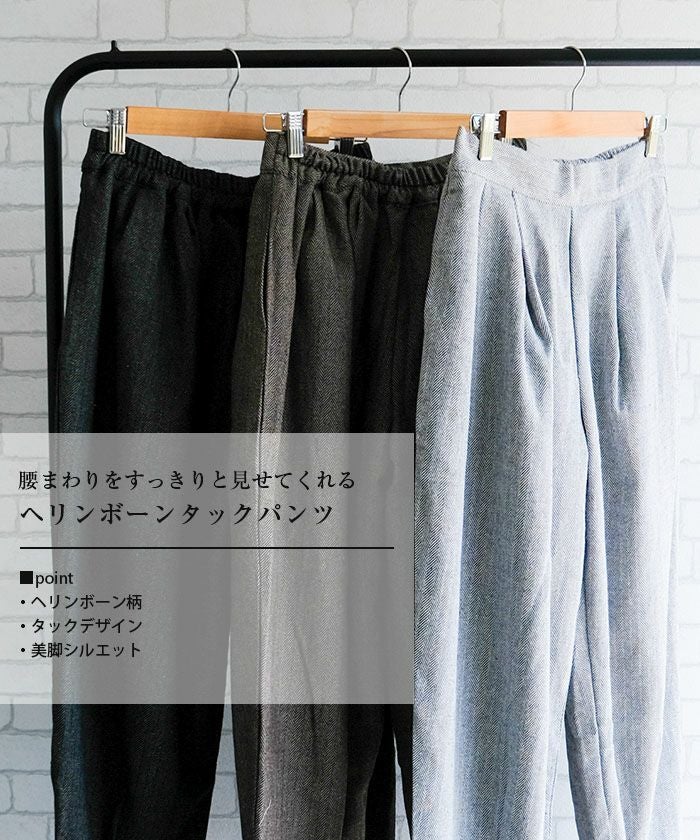 送料無料 ヘリンボーンタックパンツ レディース 春 秋 冬 M |アクアガレージ aquagarage
