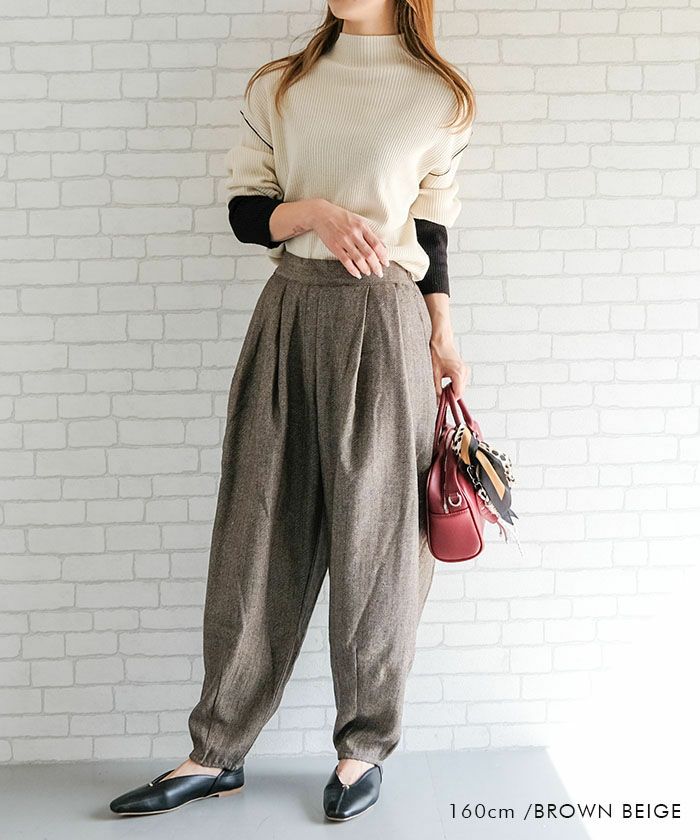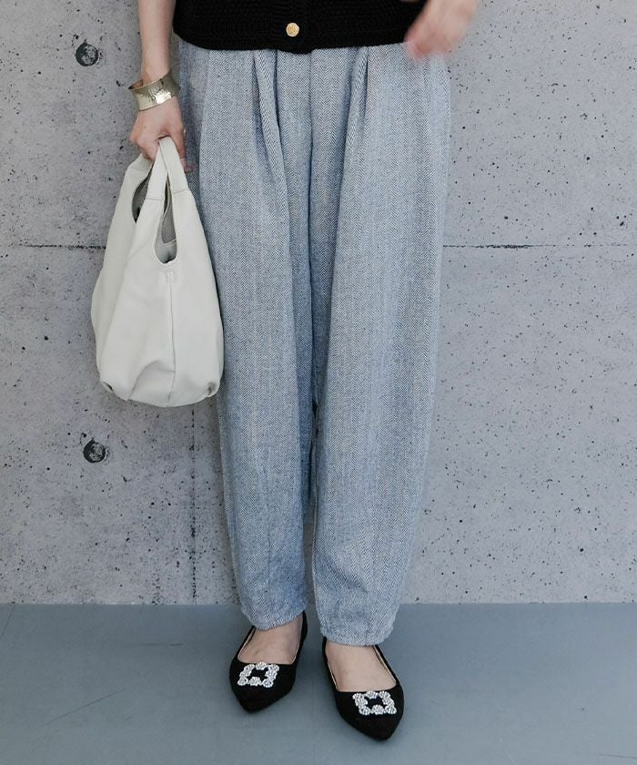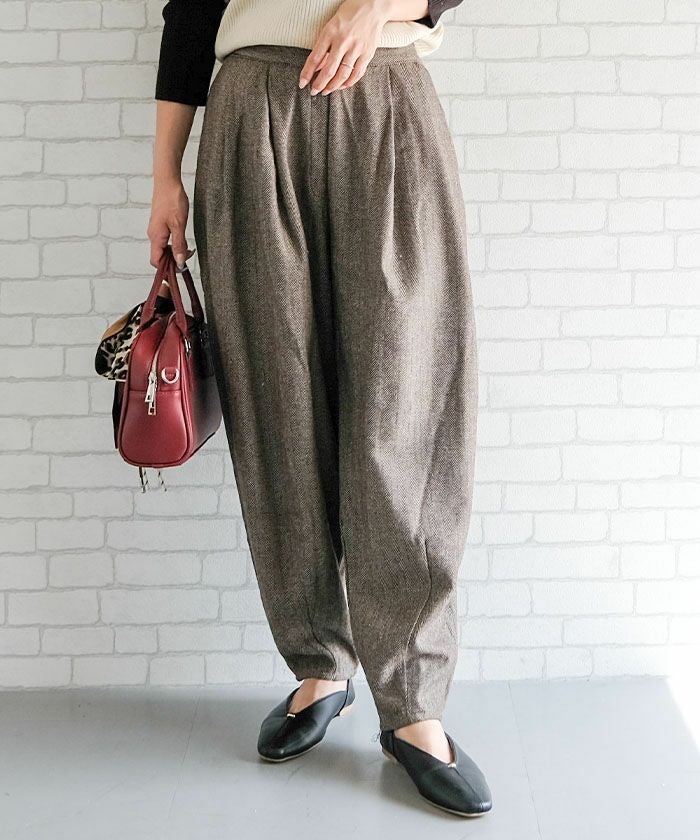 送料無料 ヘリンボーンコクーンパンツ レディース 春 秋 冬 M L LL ≪ゆうメール便配送30・代引不可≫ |アクアガレージ aquagarage