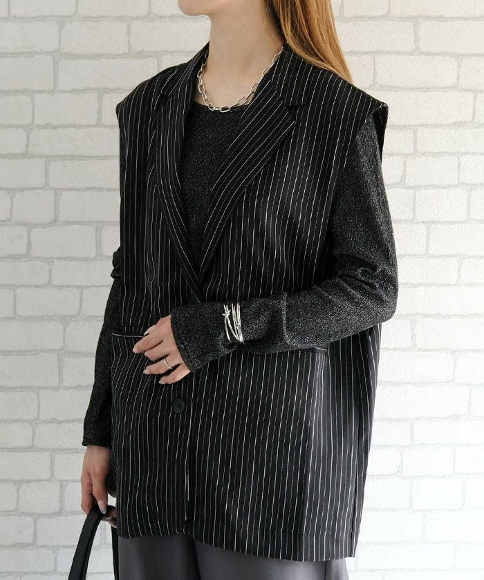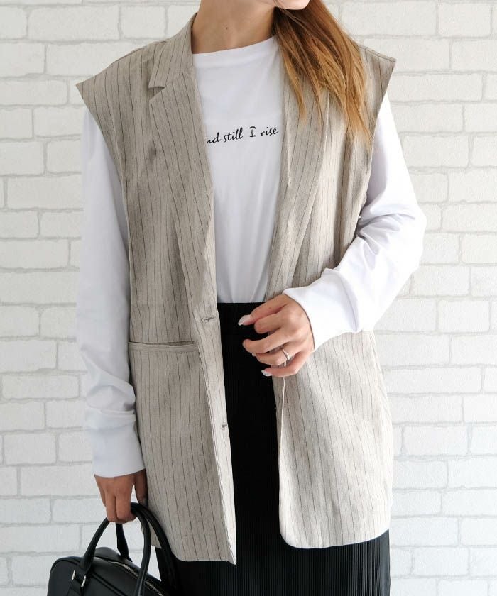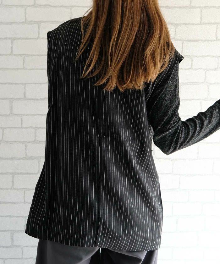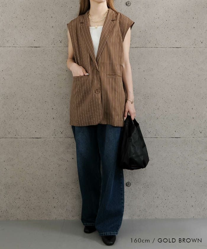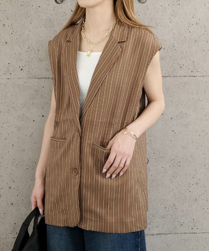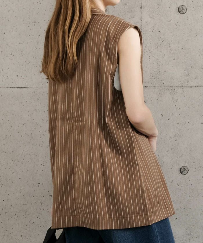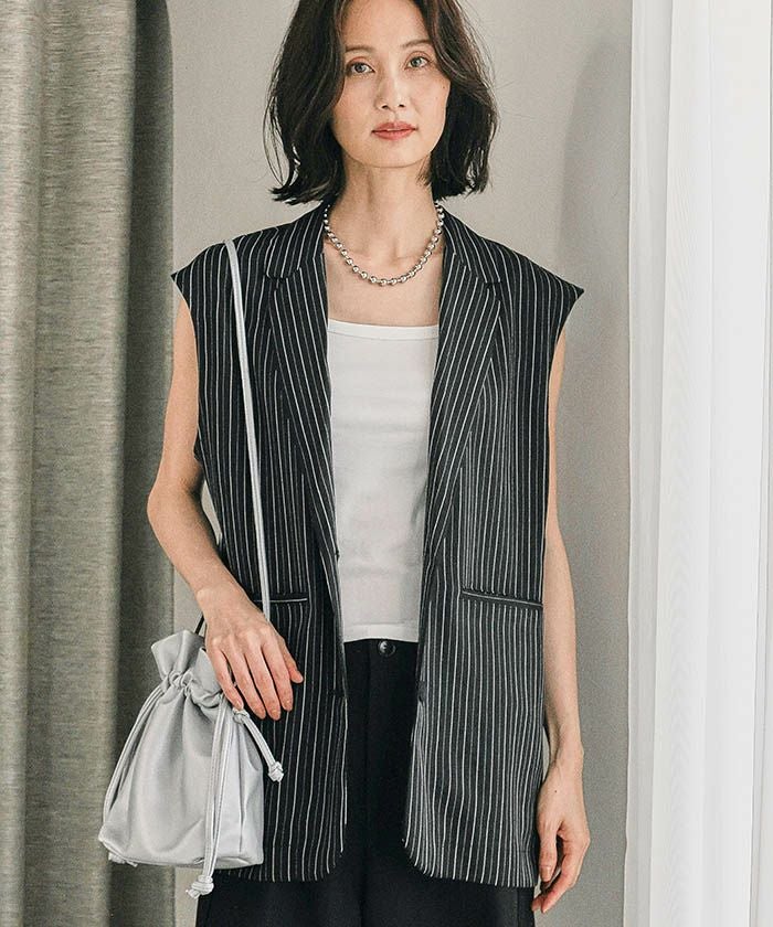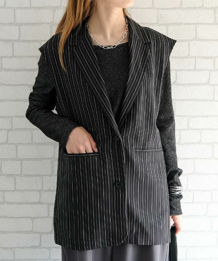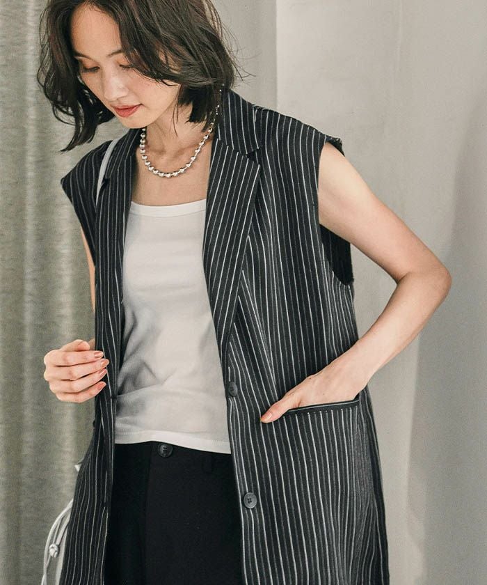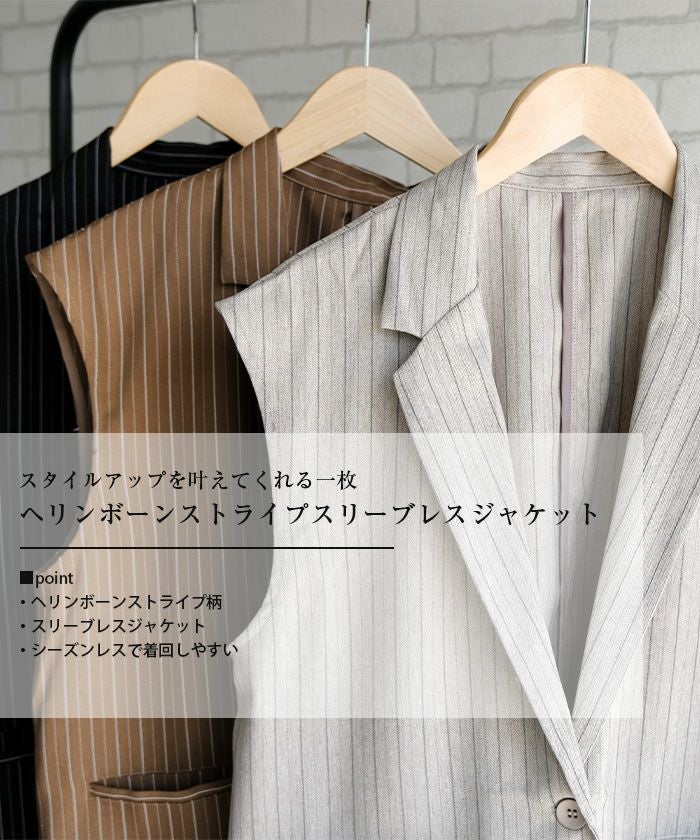 送料無料 ヘリンボーンストライプスリーブレスジャケット 春 夏 秋 M | アクアガレージ aquagarage