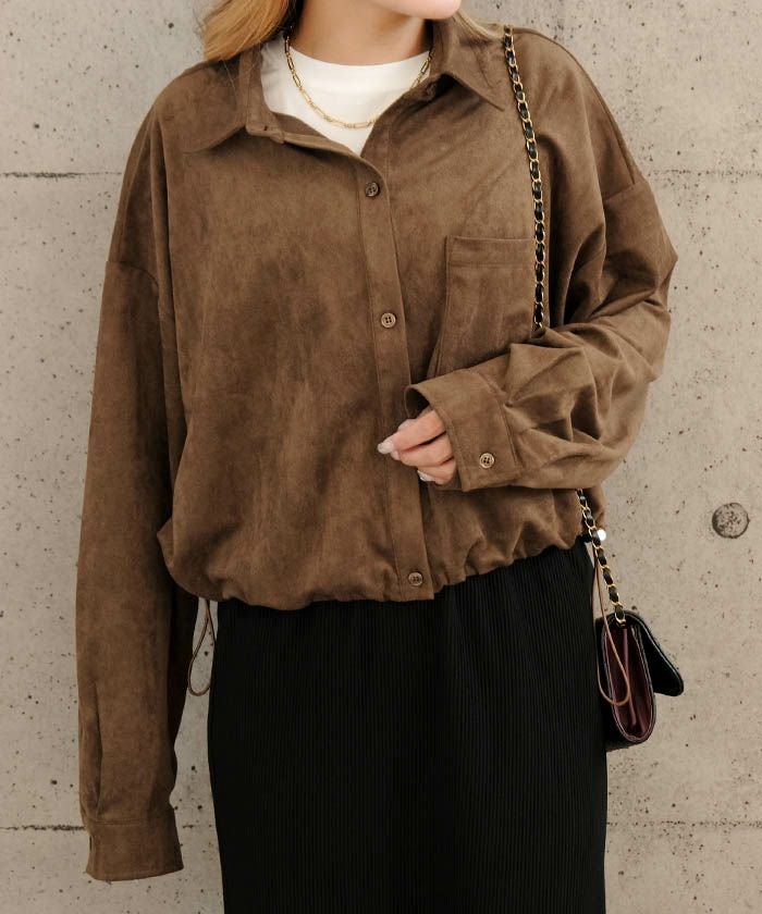 送料無料 スエード裾ドロストシャツ レディース 春 秋 冬 ≪ゆうメール便配送30・代引不可≫| アクアガレージ aquagarage