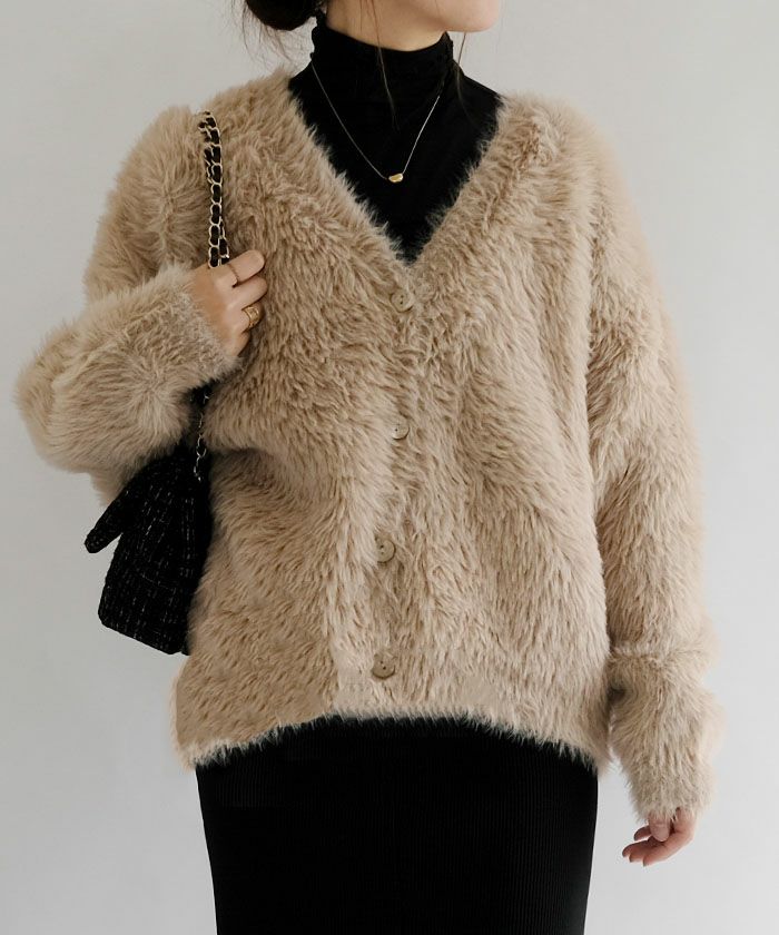 送料無料 MIXシャギーニットカーディガン 秋 冬 M レディース | アクアガレージ aquagarage