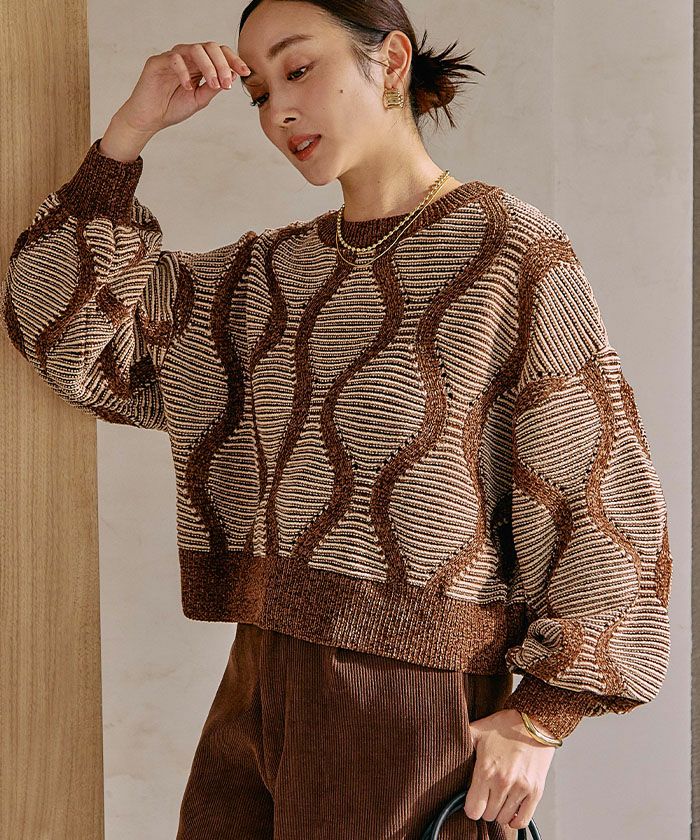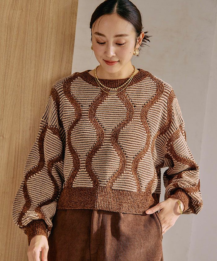 ジャガードショートニットトップス レディース | アクアガレージ aquagarage