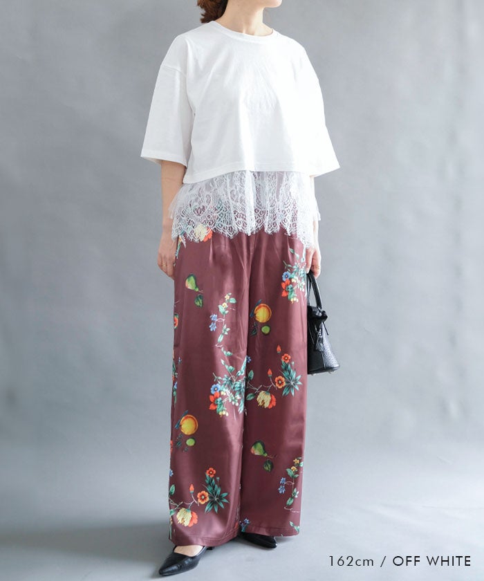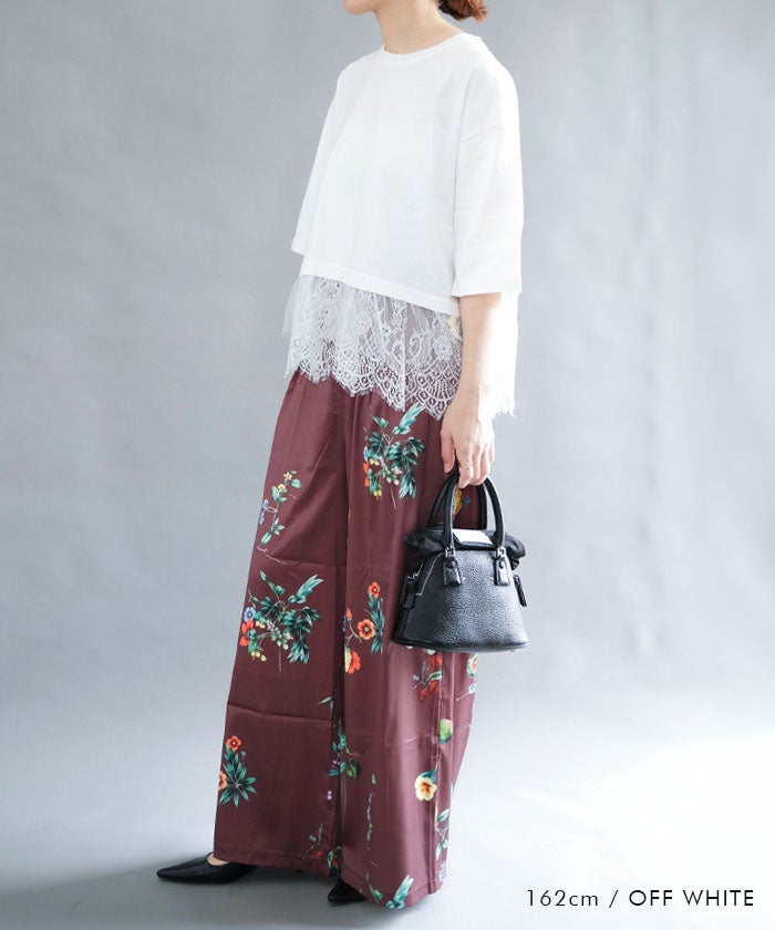 送料無料 花柄ワイドパンツ レディース 春 夏 秋 M ≪ゆうメール便配送30・代引不可≫ |アクアガレージ aquagarage
