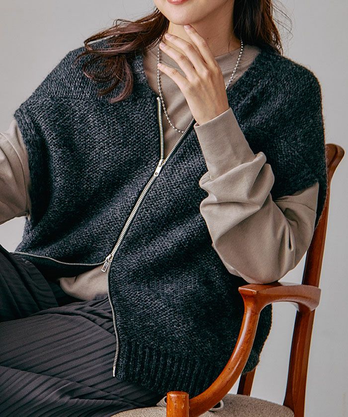 送料無料 ダブルジップニットベスト レディース 春 秋 冬 | アクアガレージ aquagarage
