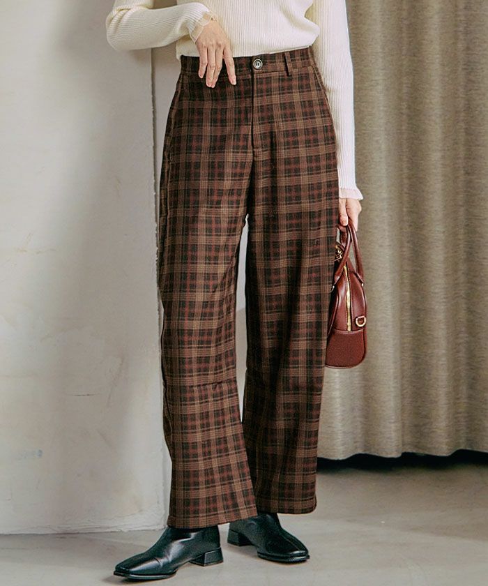 チェック柄ワイドパンツ 春 夏 秋 冬 M L |アクアガレージ aquagarage