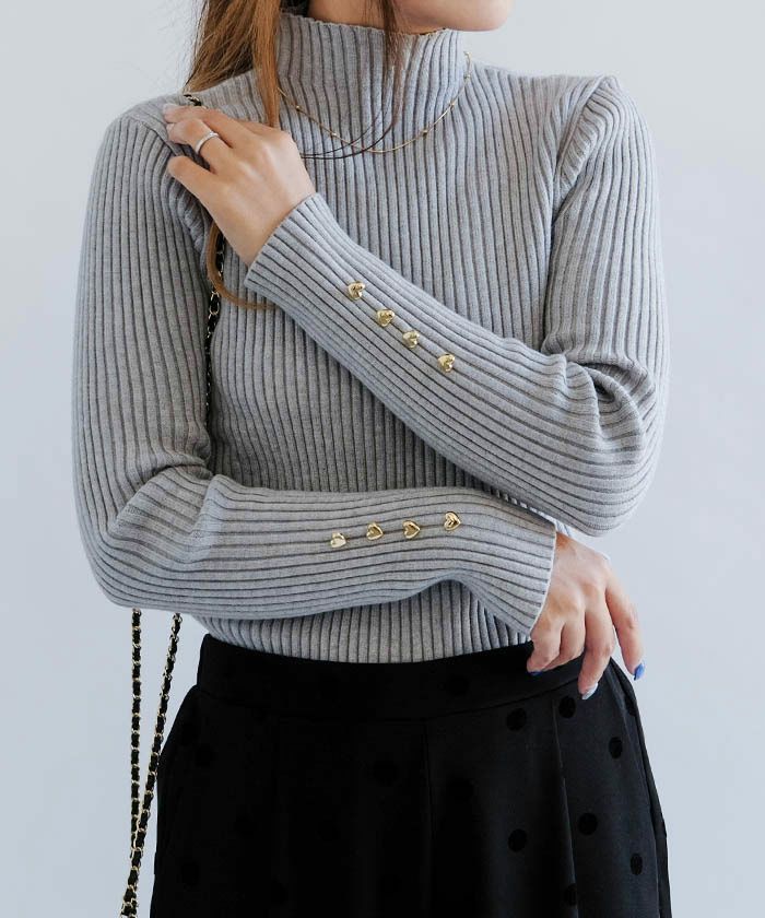 送料無料 ハイネック袖ハートボタンリブニットトップス 春 秋 冬 M レディース ≪ゆうメール便配送30・代引不可≫ | | アクアガレージ aquagarage