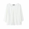 送料無料 半袖or7分袖から選べる フロントプリーツシフォンブラウス M L LL 春 夏 半袖 7分袖 七分袖≪ゆうメール便配送20・代引不可≫ | アクアガレージ aquagarage