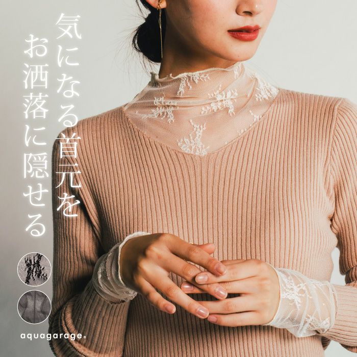 送料無料 首のシワを隠せるレースインナー レディース 春 夏 秋 冬 S M L LL 3L 長袖 ≪ゆうメール便配送05・代引不可≫ | アクアガレージ aquagarage