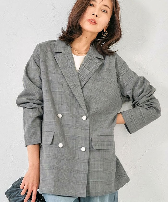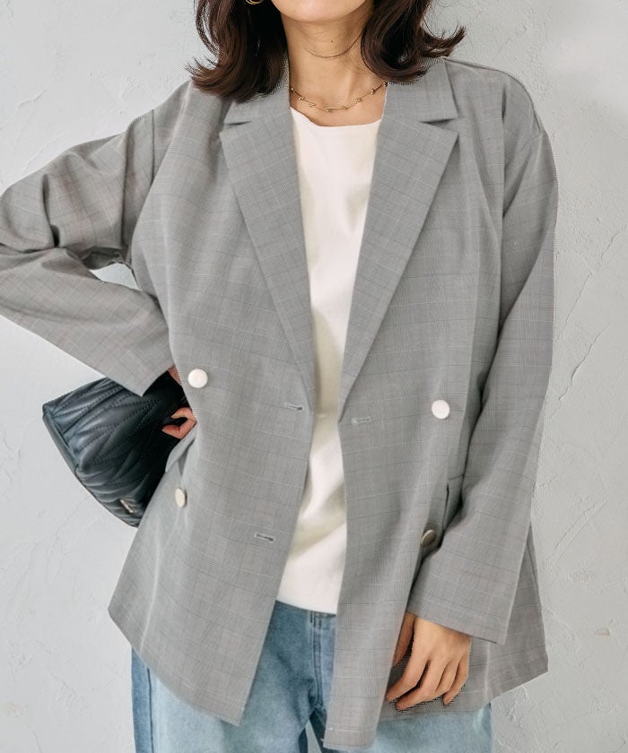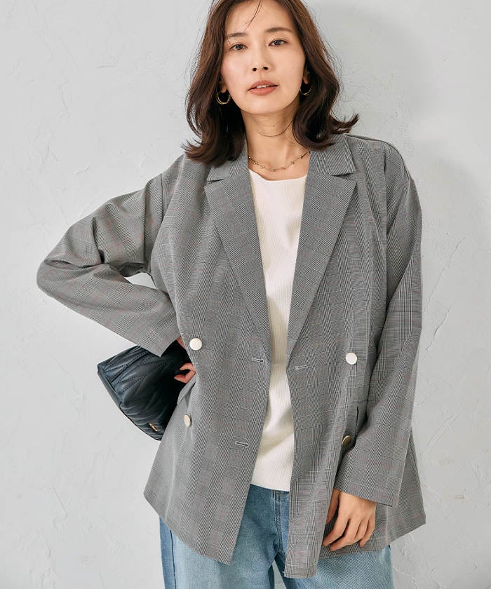送料無料 グレンチェックテーラードジャケット | アクアガレージ aquagarage