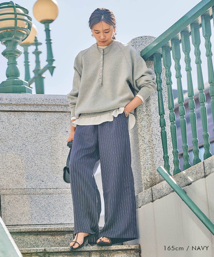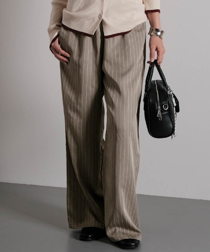 送料無料 【セットアップ可】ツータックストライプワイドパンツ 春 夏 秋 冬 M |≪ゆうメール便配送30・代引不可≫アクアガレージ aquagarage