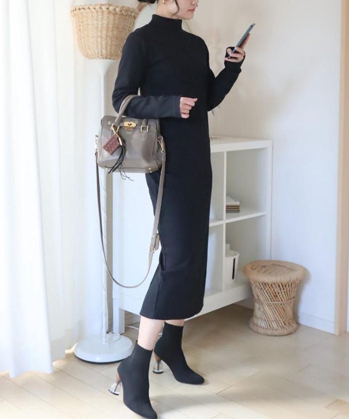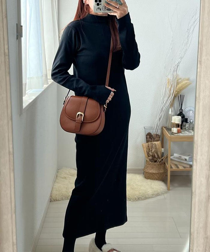 送料無料 フィンガースリーブプチハイリブワンピース 春 秋 冬 | アクアガレージ aquagarage