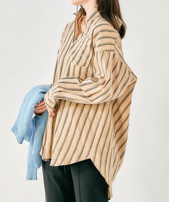 送料無料 バンドカラーフランネルブラウス 春 秋 冬 ≪ゆうメール便配送30・代引不可≫| アクアガレージ aquagarage aquagarage