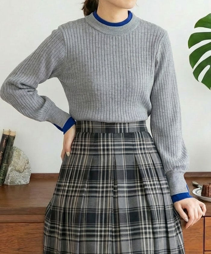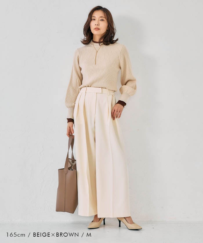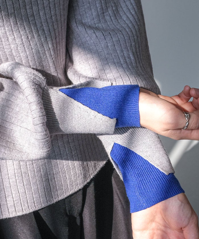 送料無料 ボトルネック配色リブニットトップス 春 秋 冬 M レディース ≪ゆうメール便配送30・代引不可≫ | | アクアガレージ aquagarage