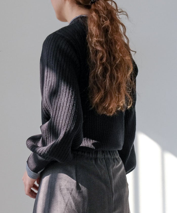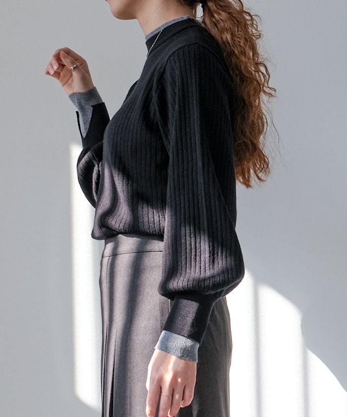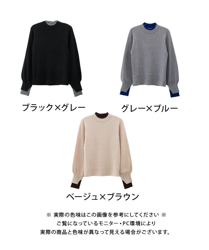 送料無料 レイヤード風リブニットトップス 春 秋 冬 M L レディース ≪ゆうメール便配送30・代引不可≫ | | アクアガレージ aquagarage