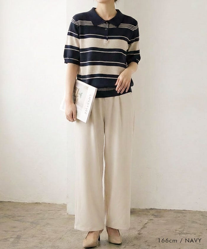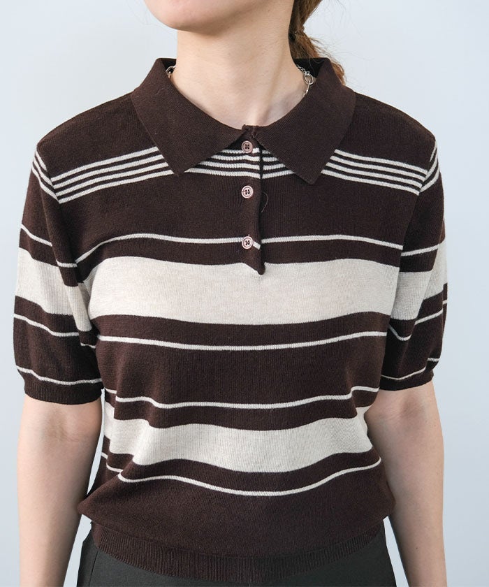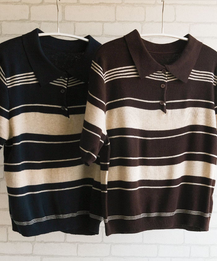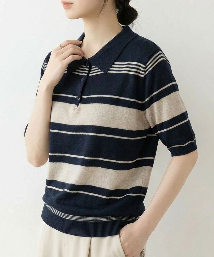送料無料 マルチボーダーポロニットトップス 春 夏 ≪ゆうメール便配送20・代引不可≫ | アクアガレージ aquagarage