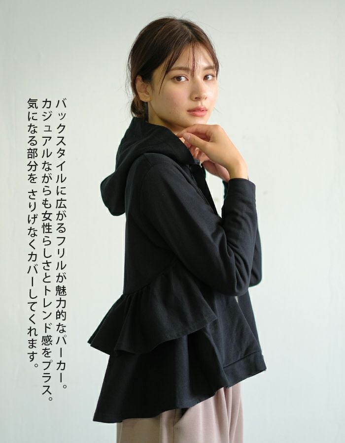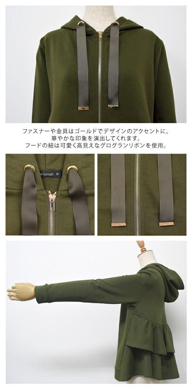送料無料 バックフリルパーカー レディース 春 秋 長袖 ジップアップパーカー | アクアガレージ aquagarage