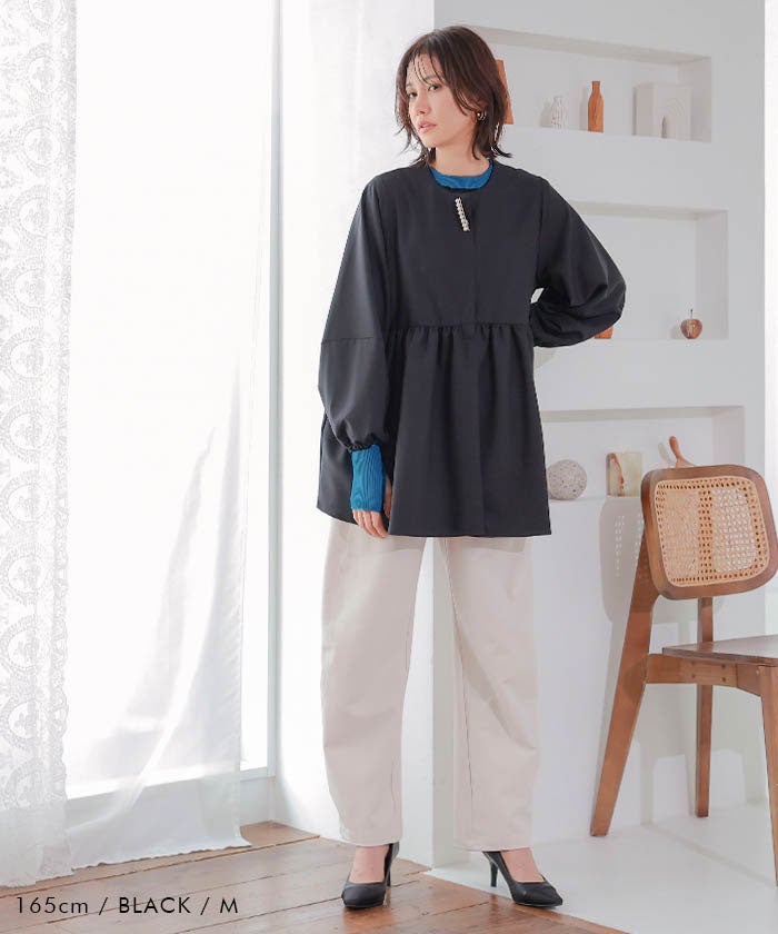 送料無料 ウエストボリュームタックスタンド長袖ブラウス 春 秋 冬 M ≪ゆうメール便配送20・代引不可≫ | アクアガレージ aquagarage