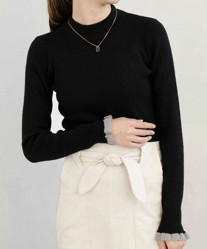 送料無料 指穴付きバイカラーリブニット 春 秋 冬 M L レディース ≪ゆうメール便配送30・代引不可≫ | | アクアガレージ aquagarage