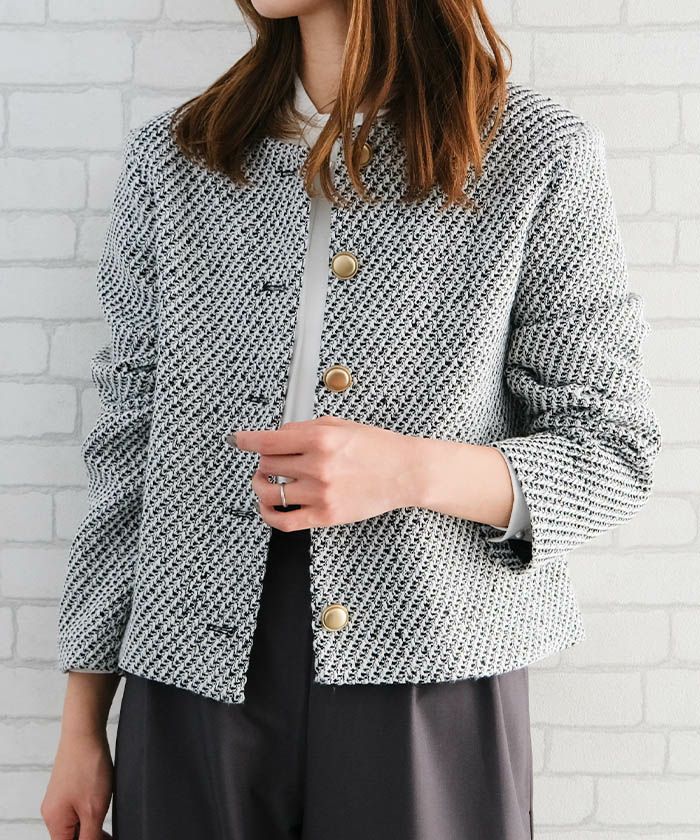 送料無料 ノーカラーツイードジャケット レディース | アクアガレージ aquagarage